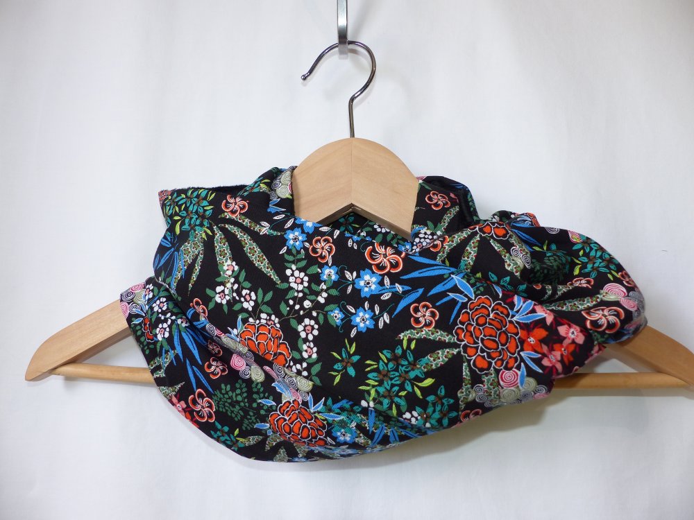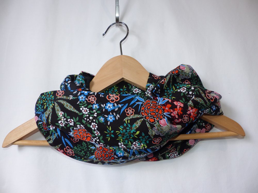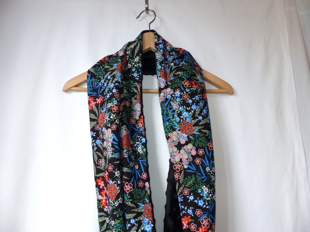 Accessoire à part entière indispensable pour apporter chaleur et douceur, cette écharpe tubulaire est conçue une face en viscose imprimée, l’autre en minky de couleur noir.
