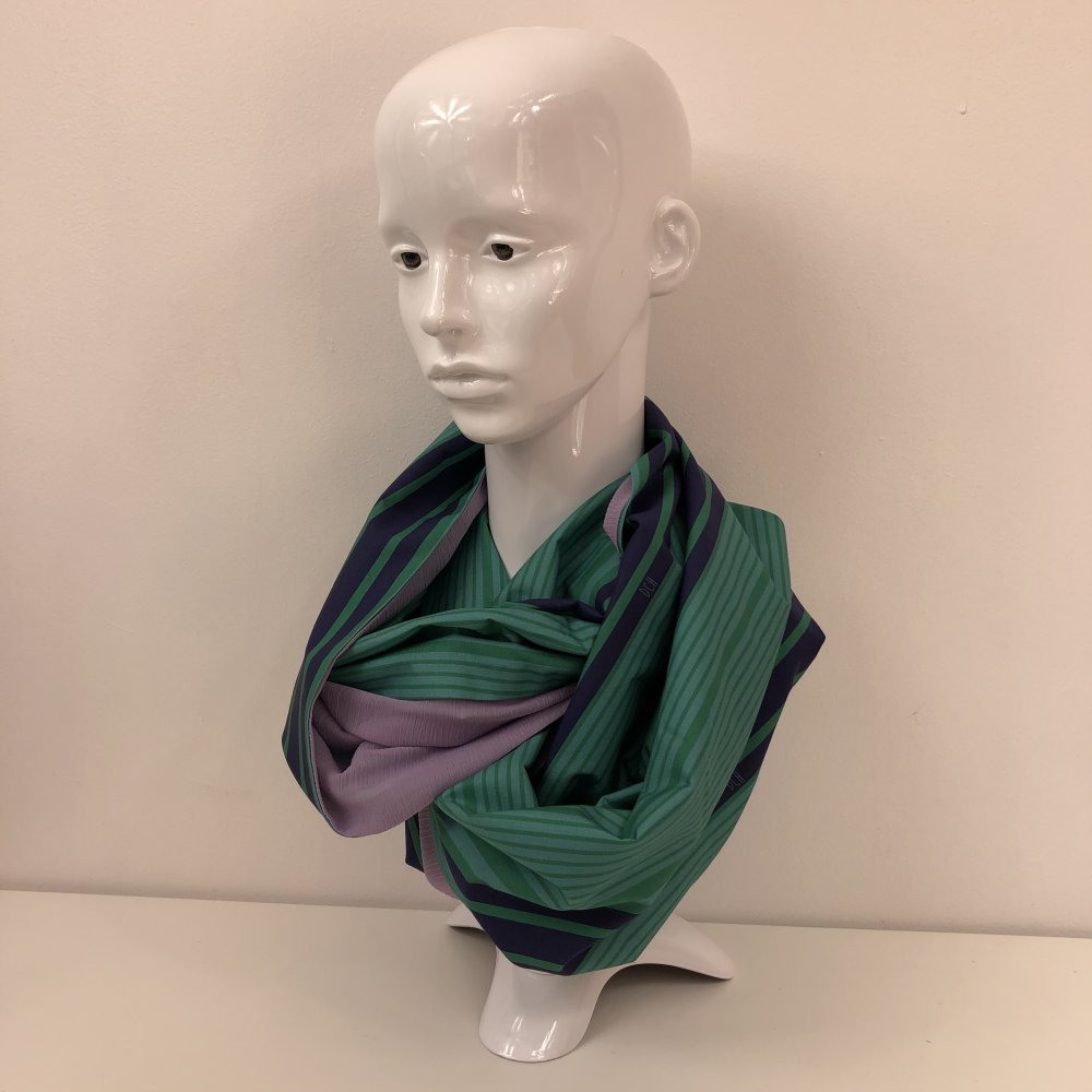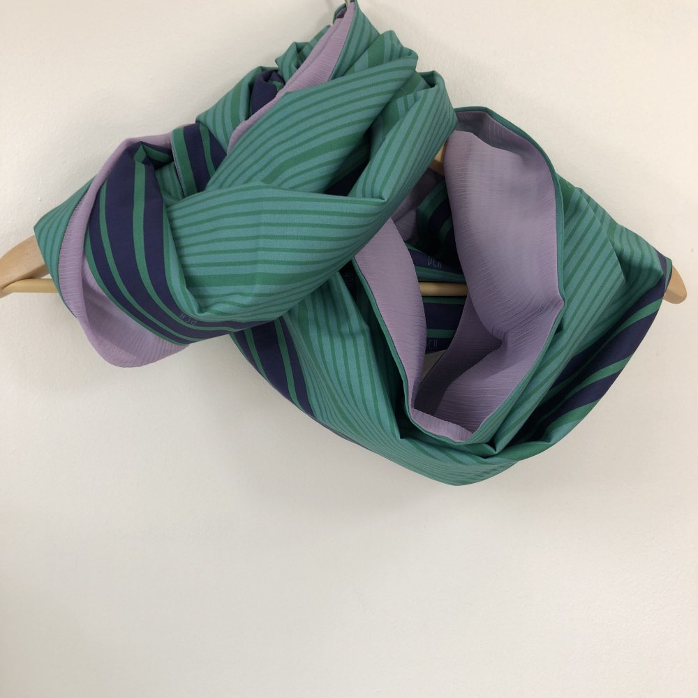 Echarpe Tubulaire Tissus Réversible Réf 1293 Longueur 143cm Largeur 46cm Couleur Coton rayures Vert et Voile Parme Fait Main Modèle Unique