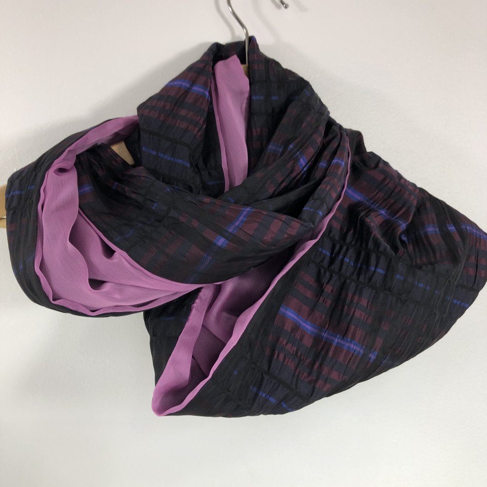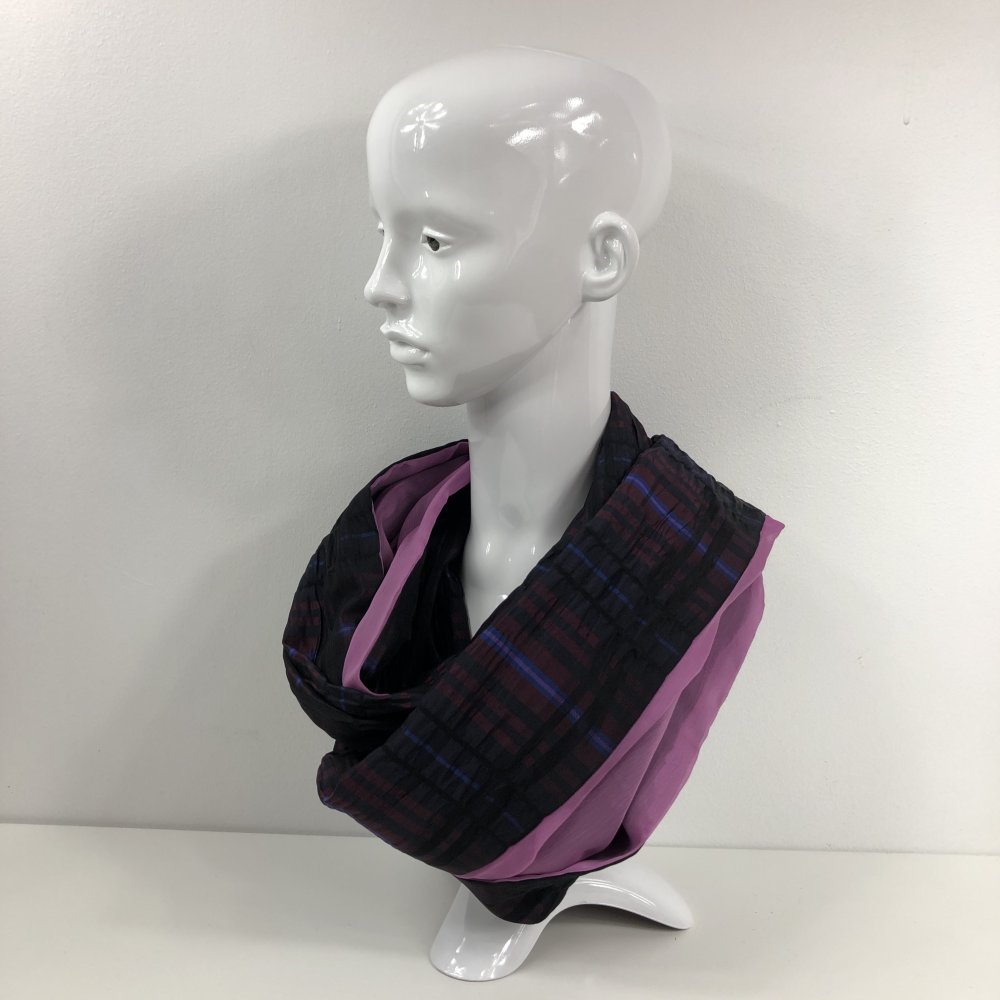 Echarpe Tubulaire Tissus Réversible Réf 1800 Longueur 150cm Largeur 41cm Couleur Taffetas Fantaisie Noir/Violet et Voile Rose Fait Main Modèle Unique