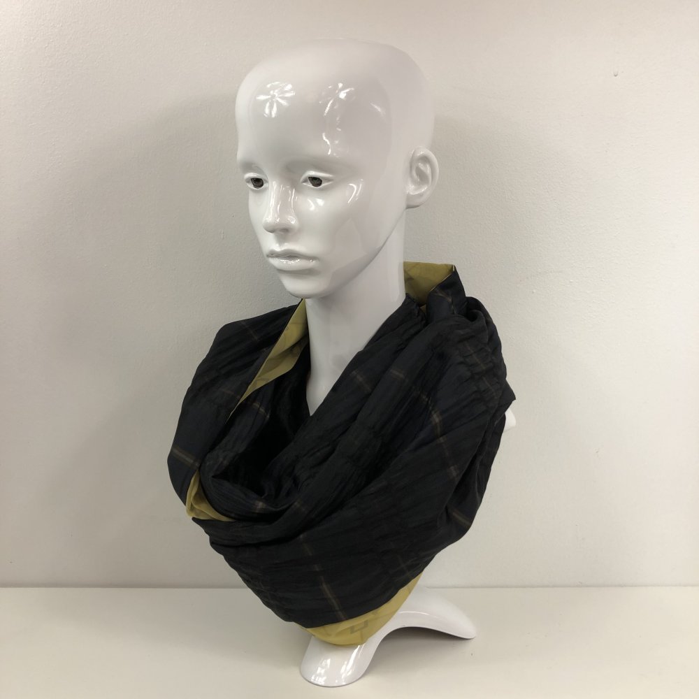 Echarpe Tubulaire Tissus Réversible Réf 2215 Longueur 150cm Largeur 40cm Couleur Noir/Kaki et Voile Jaune Ocre Fait Main Modèle Unique