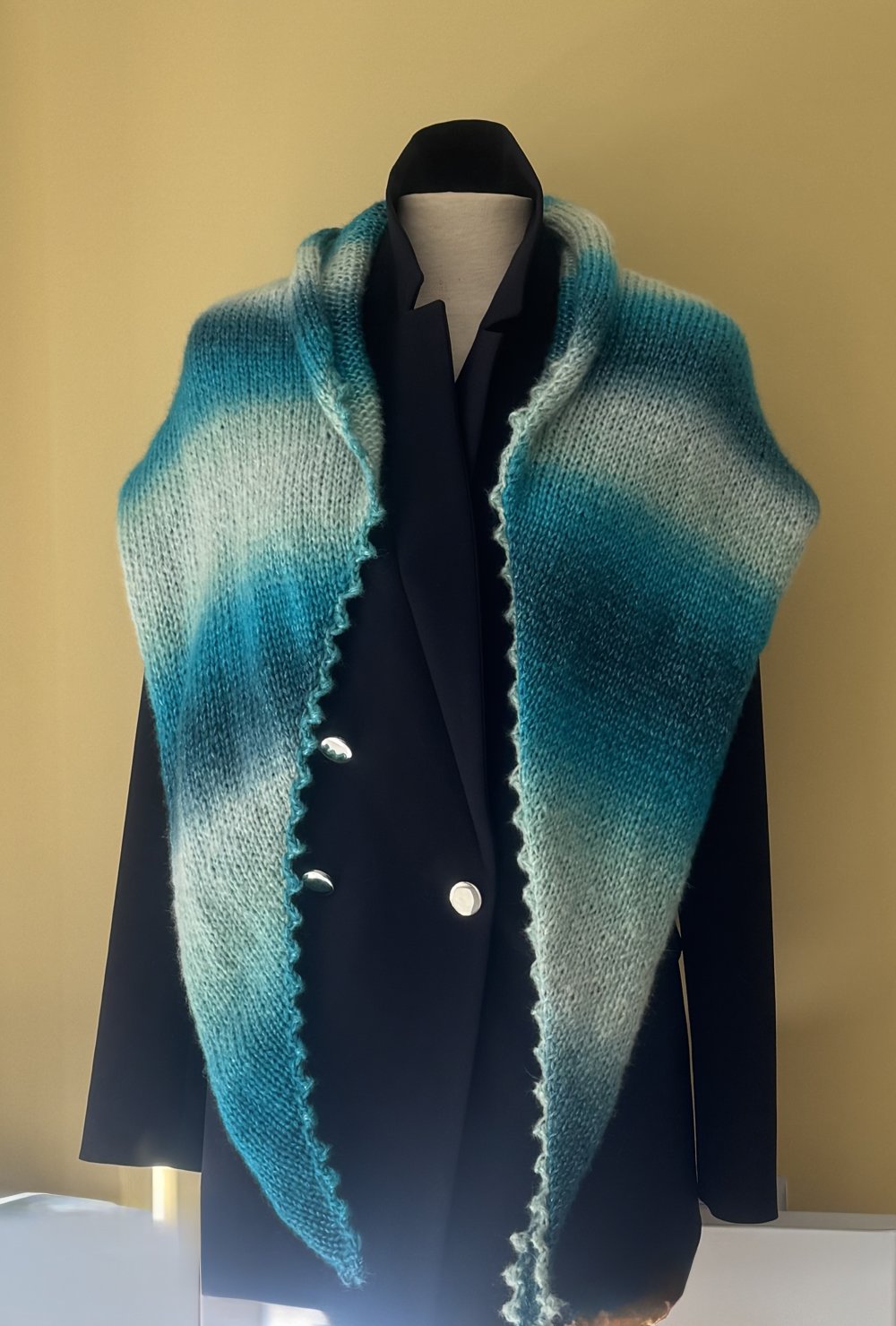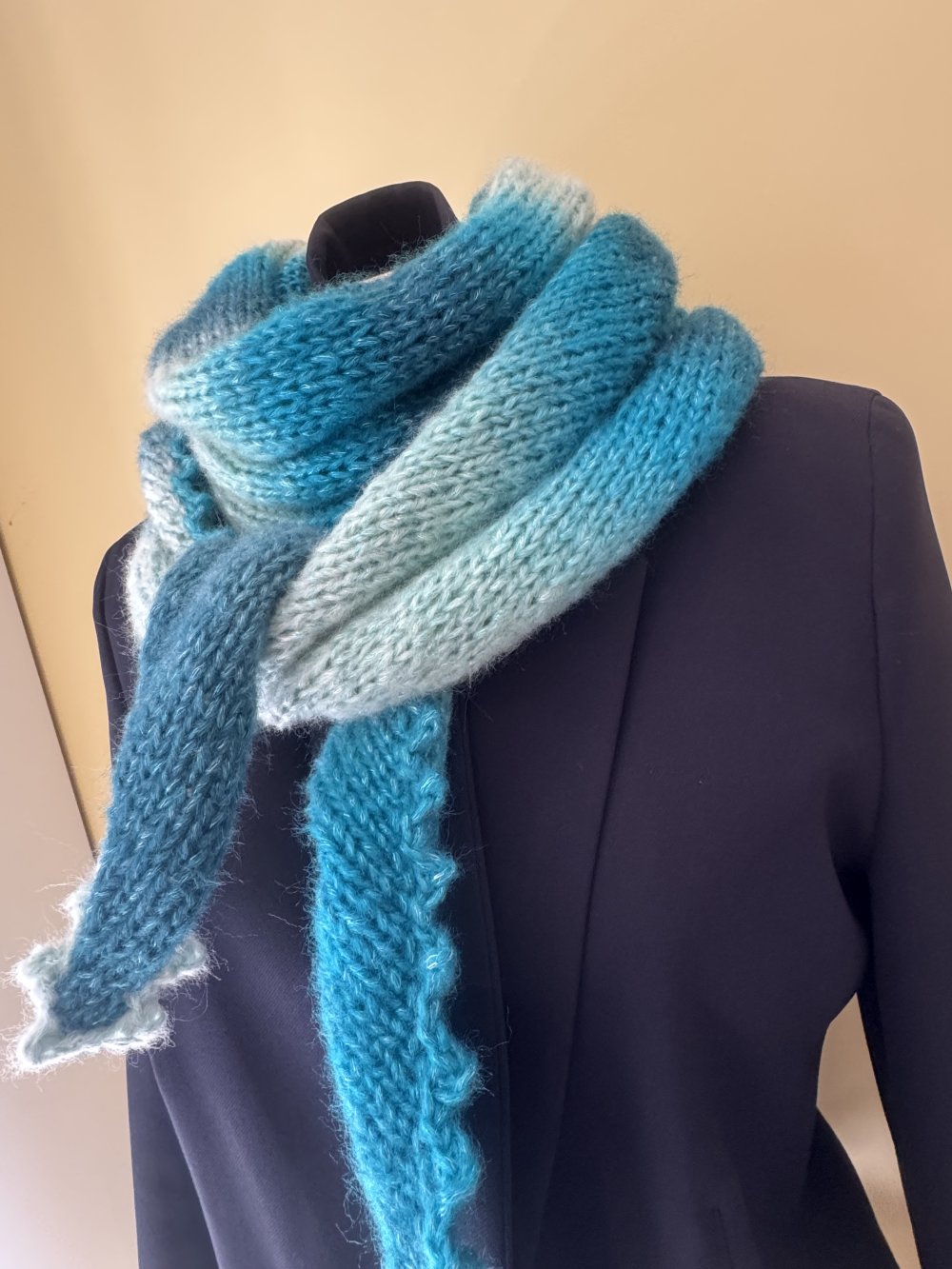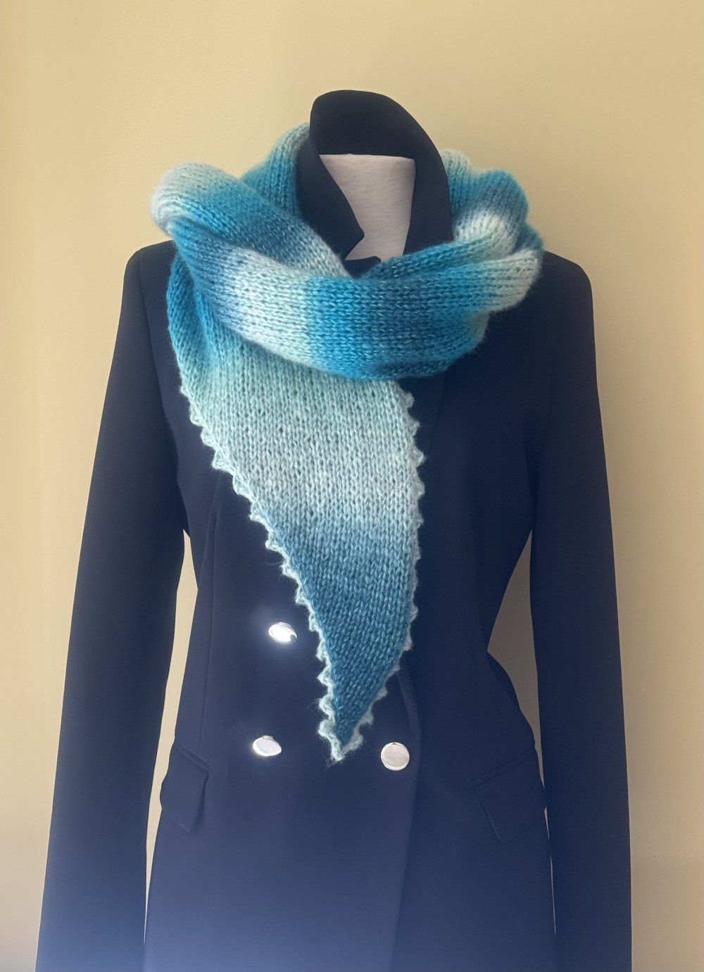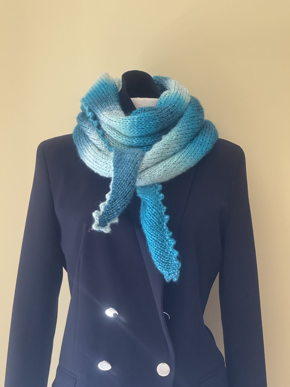 Ce TOUR DE COU est tricoté en point jersey .. modèle avec pointe de chaque coté avec en finition un tour picot au crochet .