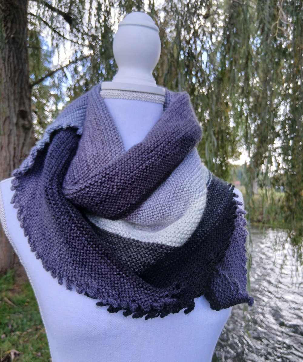 Ce foulard réalisé au tricot à la main est une véritable invitation à la douceur.