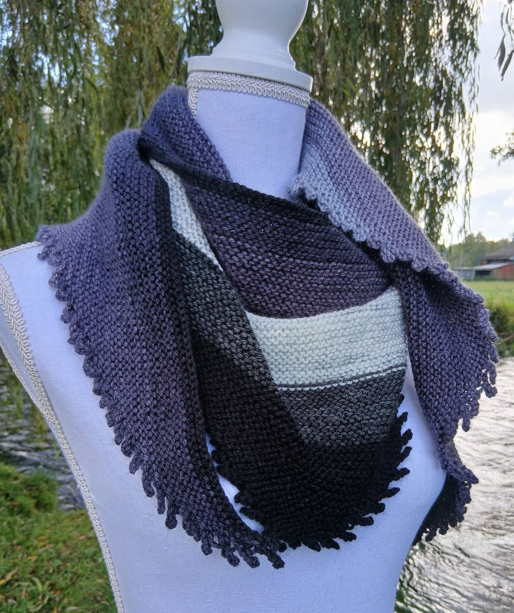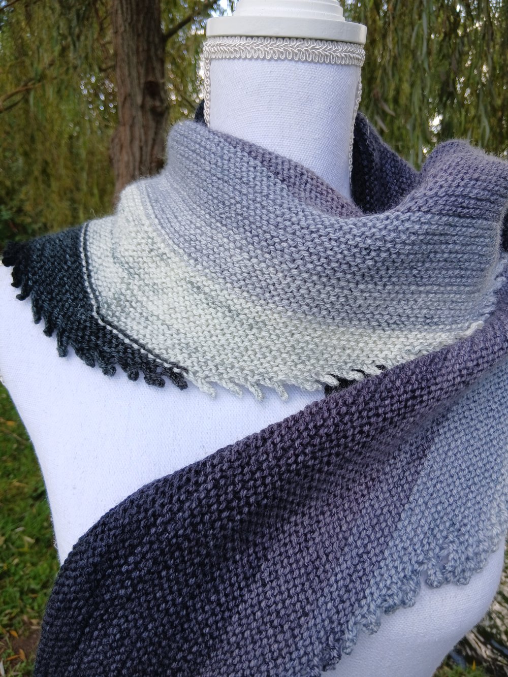 tricoté avec soin dans des tons dégradés de noir, gris anthracite, gris perle et blanc cassé, il évoque les paysages d'hiver et les soirs paisibles au coin du feu.