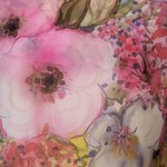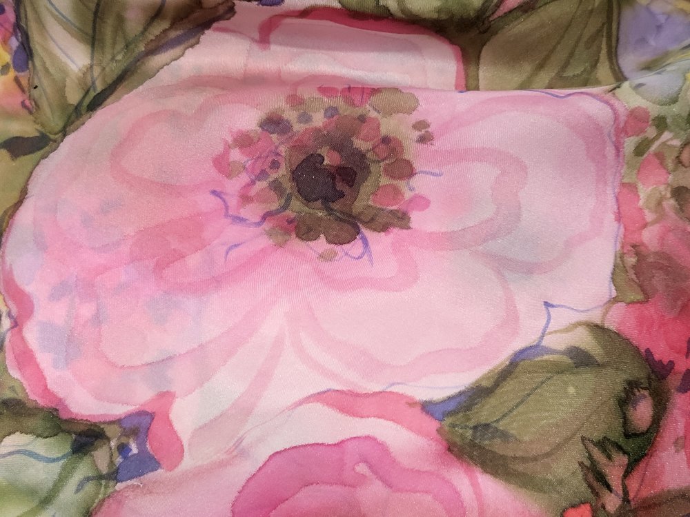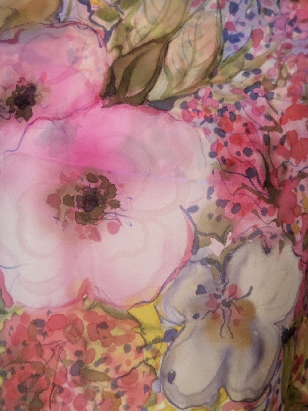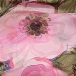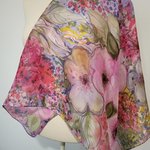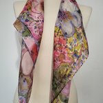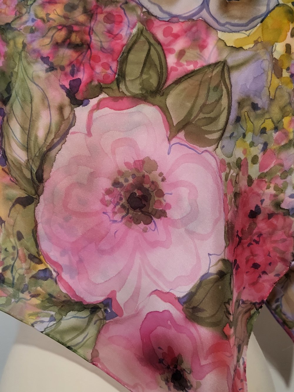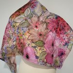 Enveloppez vous de douceur avec ce joli foulard en soie peint main motif fleuri.