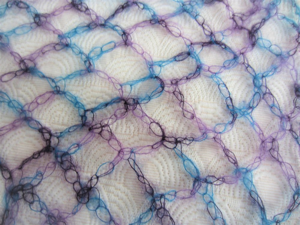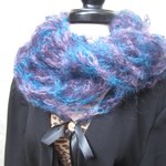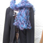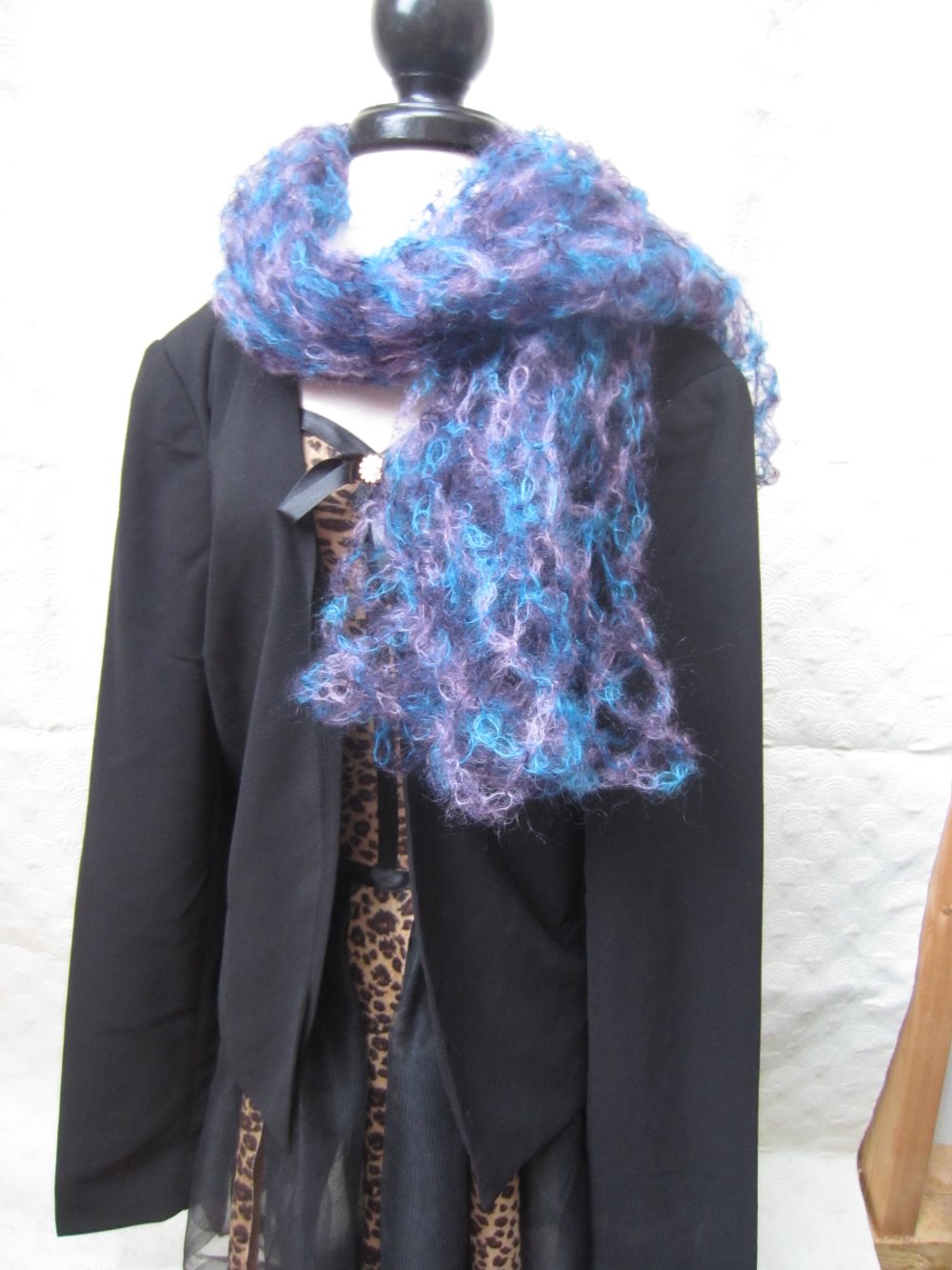 Echarpe turquoise violet fait main en fil mohair et soie,