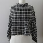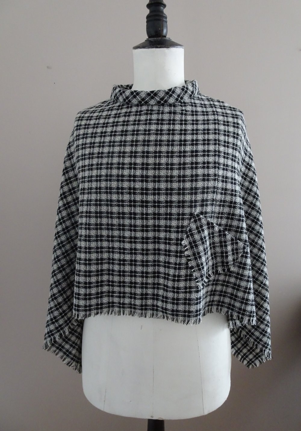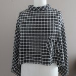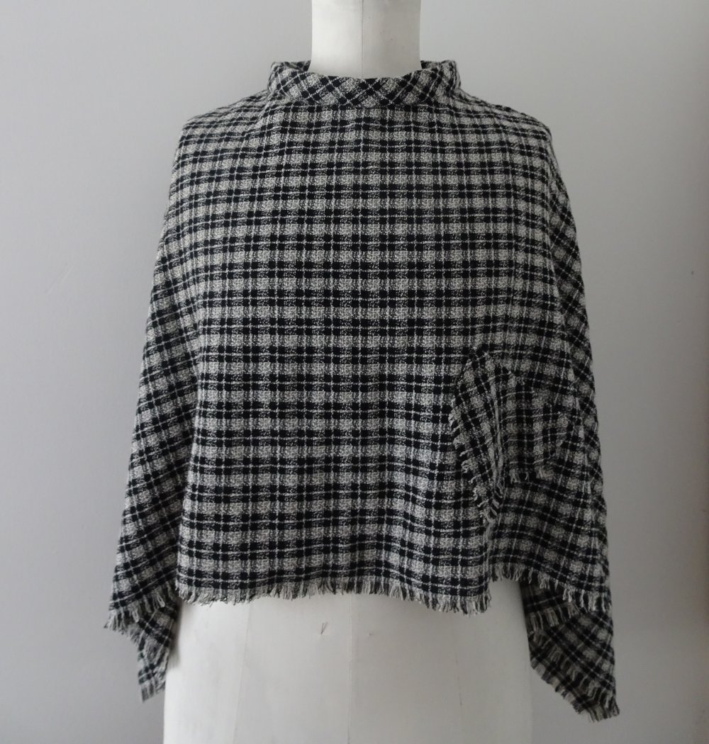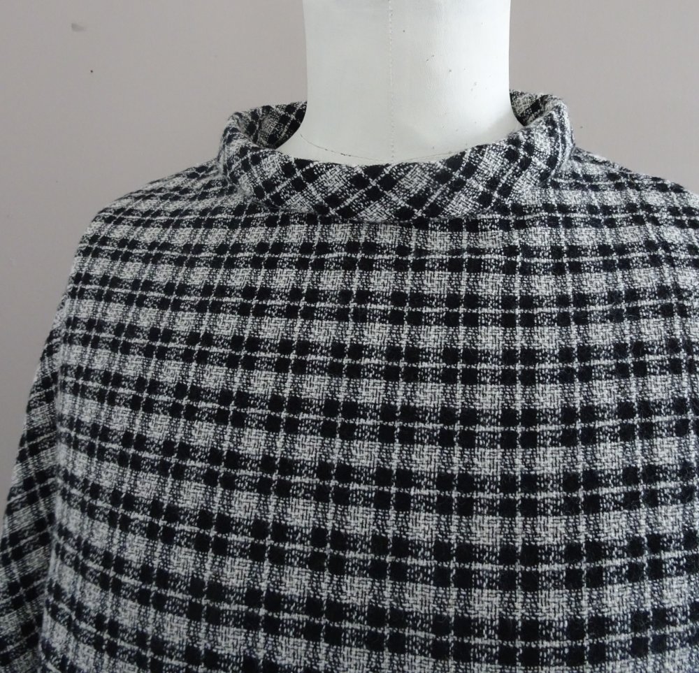 Poncho femme tissu à carreaux noirs et écrus
