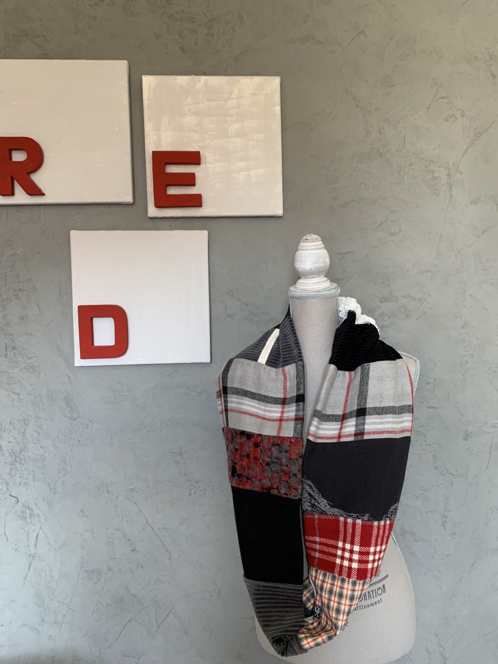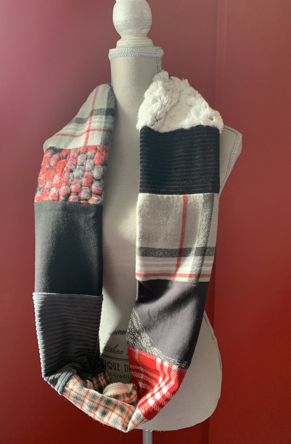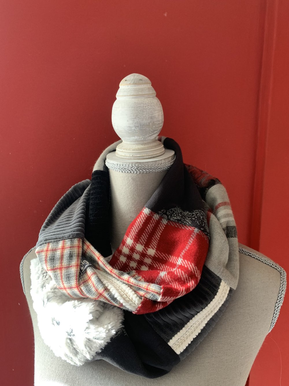 Ce mélange d'étoffes donne un ensemble travaillé et très, très exclusif qui fera de votre snood un modèle résolument différent.