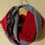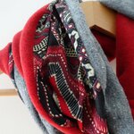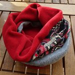Des tons chauds pour l'hiver ? Si vous aimez la couleur, vous adopterez ce snood. Il est composée d'une belle polaire rouge chiné, d'un tissu imprimé (viscose) et d'une maille chinée gris clair. il égaiera vos d'hiver et vous donnera bonne mine. Chaque écharpe est étiquetée à mon nom de créatrice. Je recycle des petits cartons pour l'expédition, c'est le petit plus écologique. Lavage à 30°