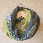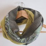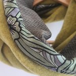 Snood trois tissus : une belle polaire verte chiné, un tissu jersey fleuri et une maille kaki