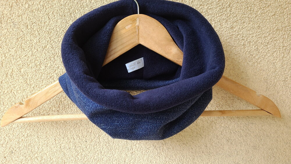 Pour vous Monsieur ou Madame, un snood bleu marine chiné (façon jeans) doublé d'une polaire très douce et de très belle qualité couleur bleu marine. tissu de très bonne qualité d un créateur breton