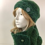 Snood Laine Tricoté Main Réf 7776 Qualité Acrylique/Laine Longueur 66cm Largeur 19cm Taille Unique Couleur Chiné Vert Modèle Unique