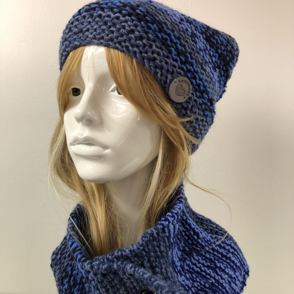 Snood Laine Tricoté Main Réf 7838 Qualité Acrylique/Laine Couleur Chiné Bleu Taille Unique Modèle Unique