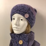 Snood Laine Tricoté Main Réf 7912 Qualité Acrylique/Laine Couleur Parme /Bleu Marine Taille Unique Largeur 19cm Modèle Unique