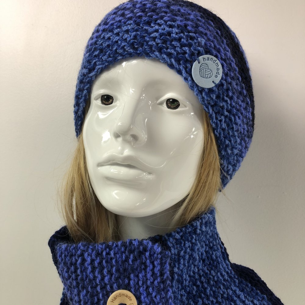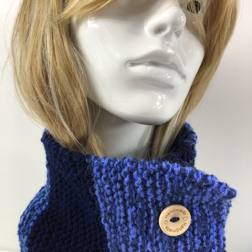 Snood Laine Tricoté Main Réf 7922 Largeur 19cm Taille Unique Qualité Acrylique/Laine Couleur Chiné Bleu/Marine Modèle Unique