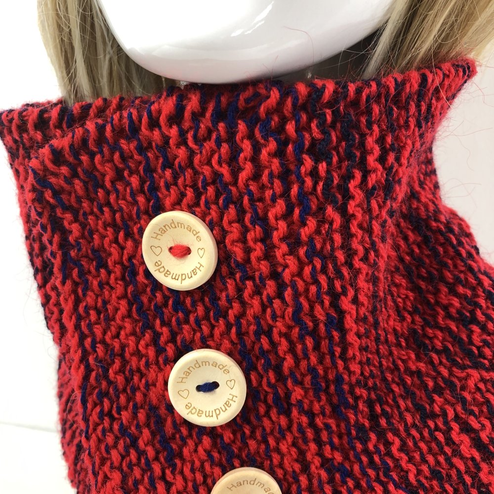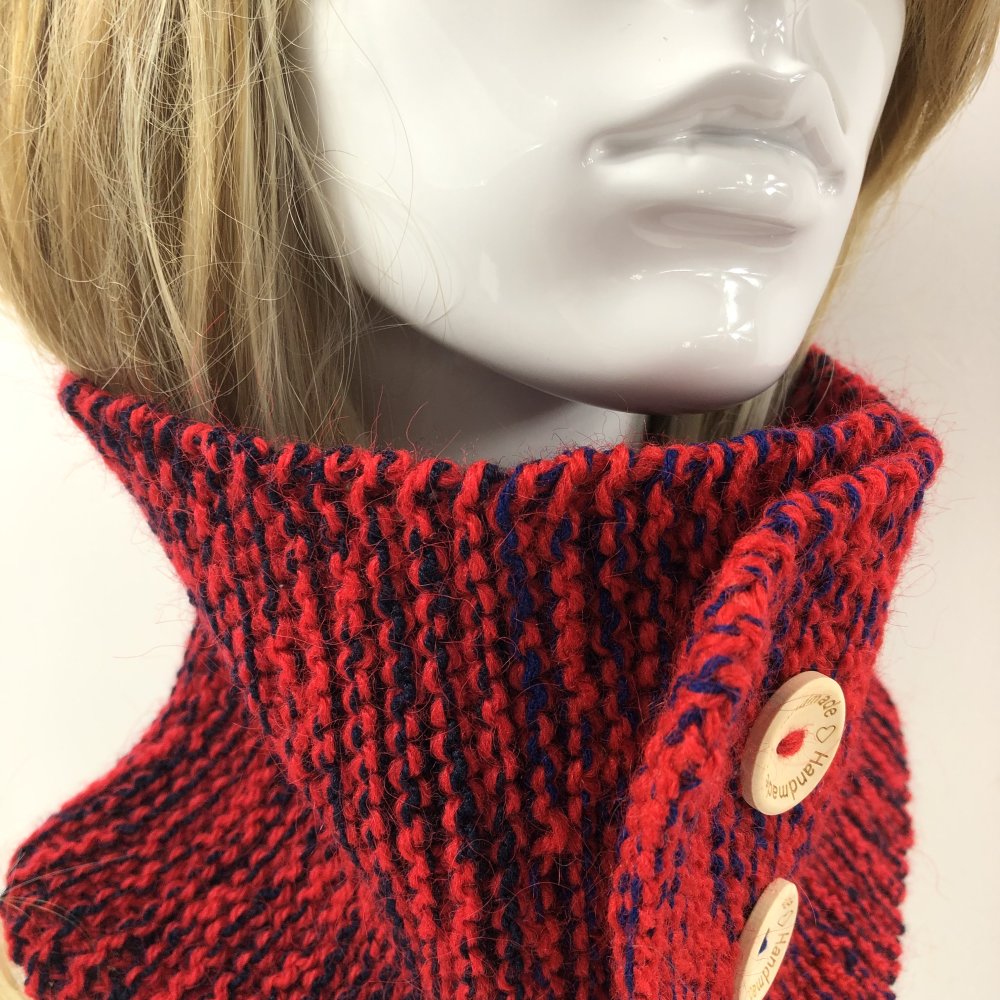 Snood Laine Tricoté Main Réf 7982 Qualité Acrylique/Laine Couleur Chiné Rouge/Marine Taille Unique Largeur 18cm Modèle Unique