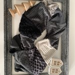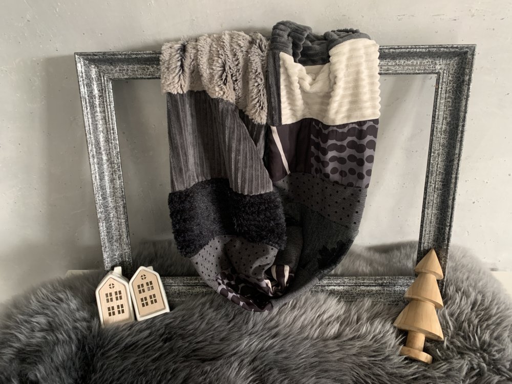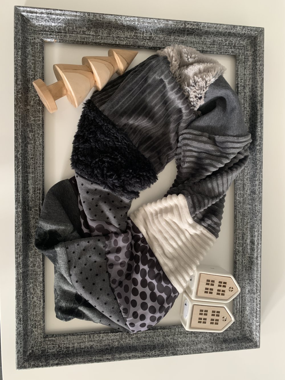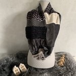 Écharpe / étole fantaisie femme, laine et tissu coton, étole écharpe tricoté fait main, accessoire mode automne hiver