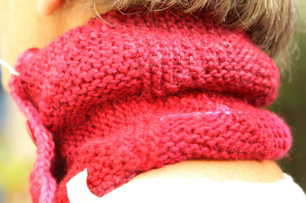 Ce tour de cou est tricoté à la laine dans un fil laine et acrylique doux est chaud. Sa couleur dégradé du bordeaux au rouge lui donne sa touche unique et originale.