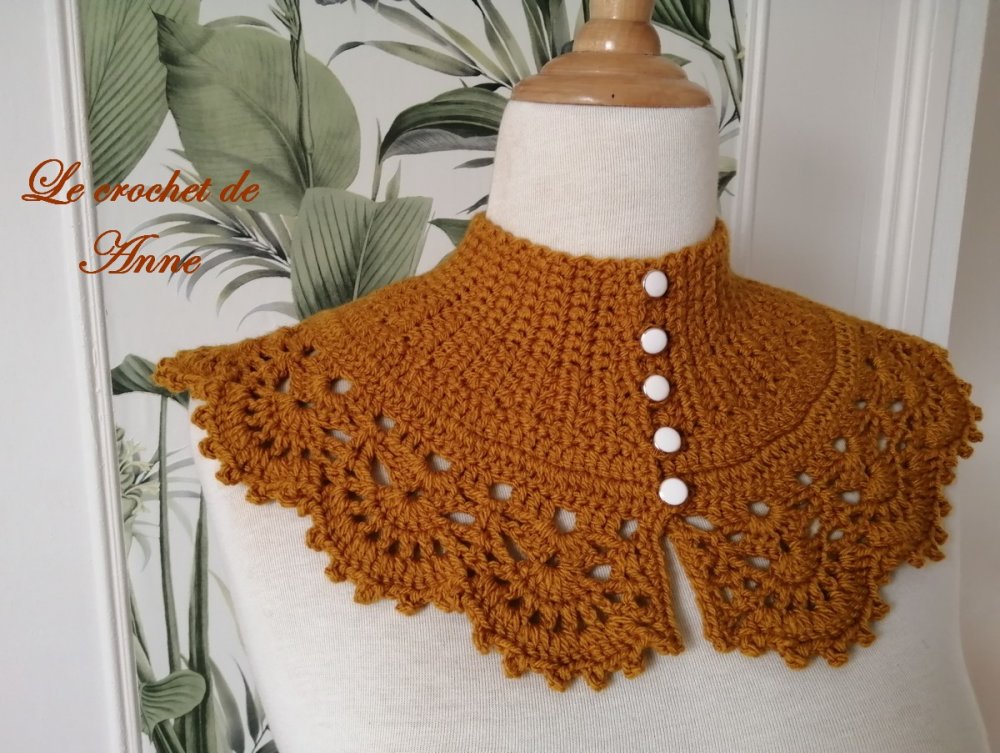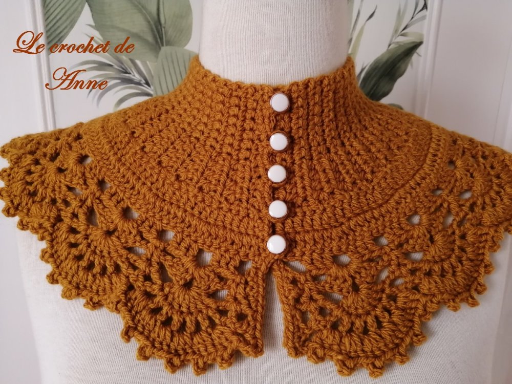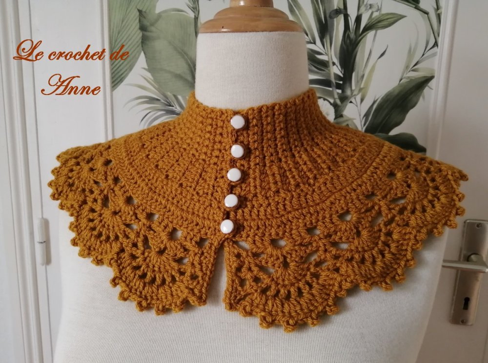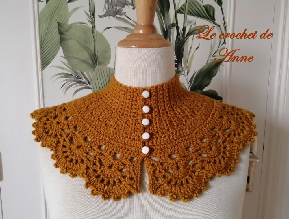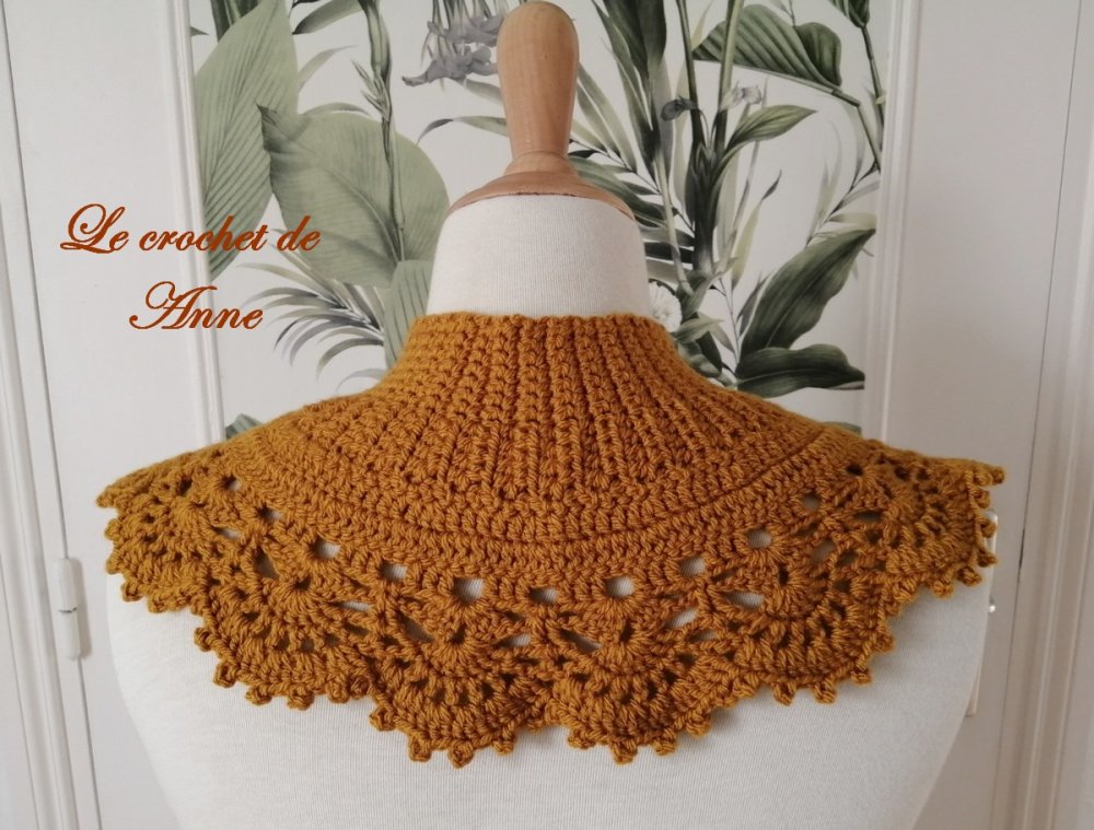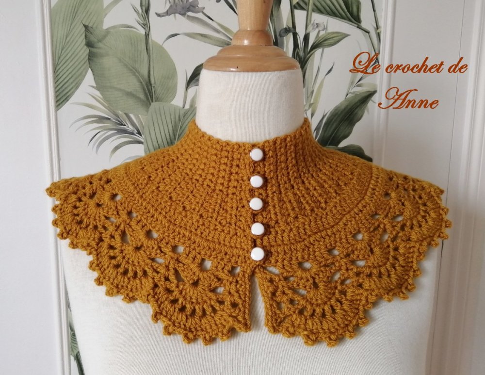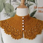 Adorable ♥♥ Tour de cou / Col jaune moutarde ♥♥ , de style Victorien, aux jolis points fantaisies, orné d'une large et belle bordure dentelle , que j'ai eu le plaisir de réaliser !