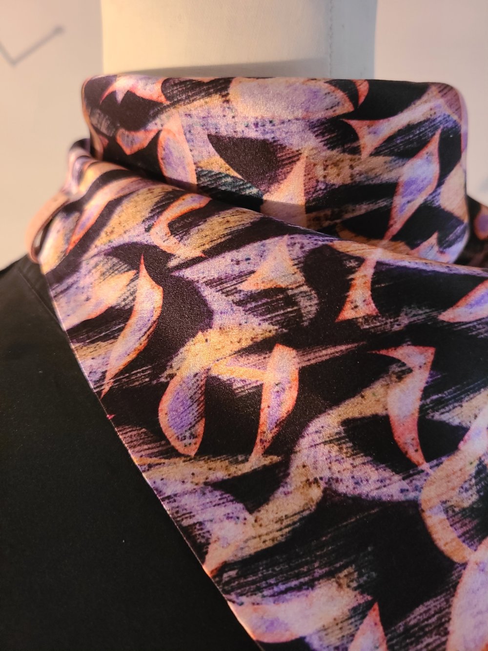 Il est en soie. Ses dimensions sont longueur : 92 cm et hauteur 47 cm