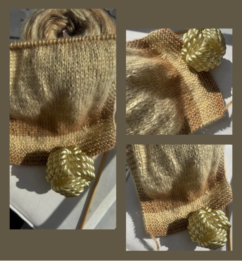 Création personnelle réalisée dans un fil duveteux , aérien, chaud et doux avec une touche de lurex ..