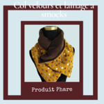 Tour de cou réalisé avec un velours marron, doux pour la peau, et un magnifique tissu lainage moutarde à smocks