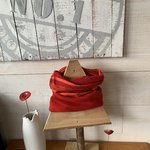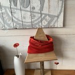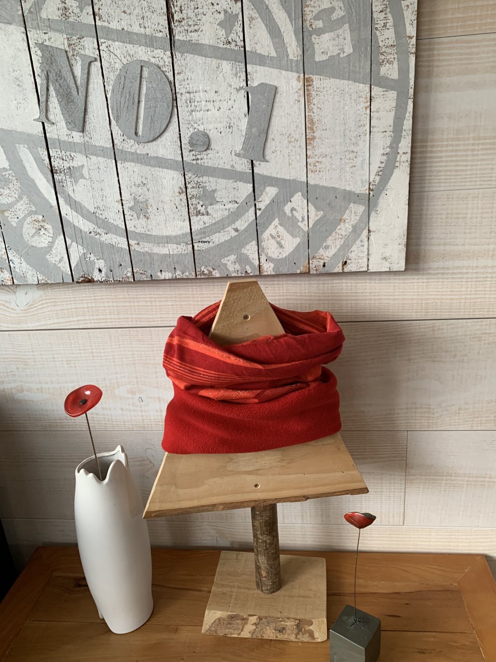 Tour de cou, snood, polaire rouge, jersey rayé, fils or, modèle unique, idée cadeau