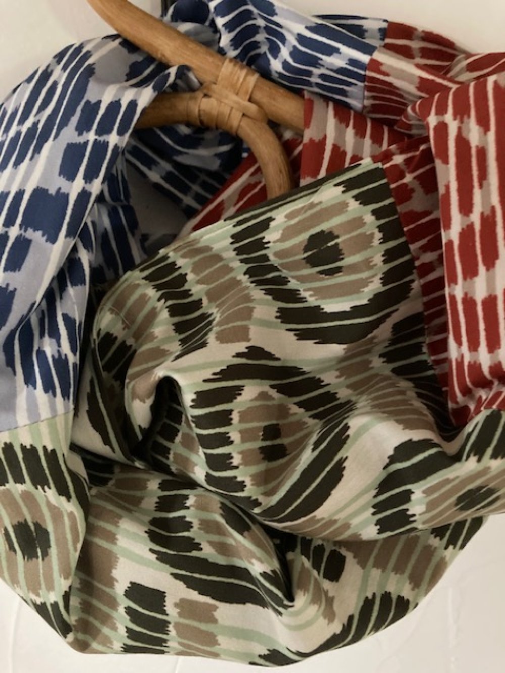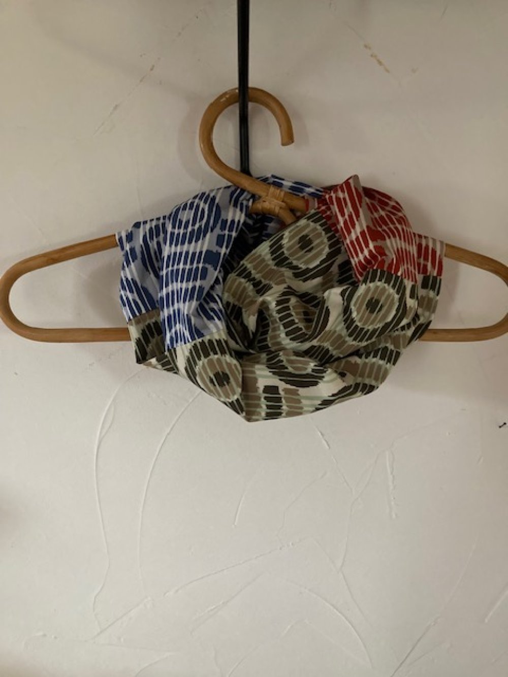Snood femme composé de plusieurs tissus assortis ( coton).La longueur permet de faire deux tours de cou afin accessoiriser joliment une tenue.