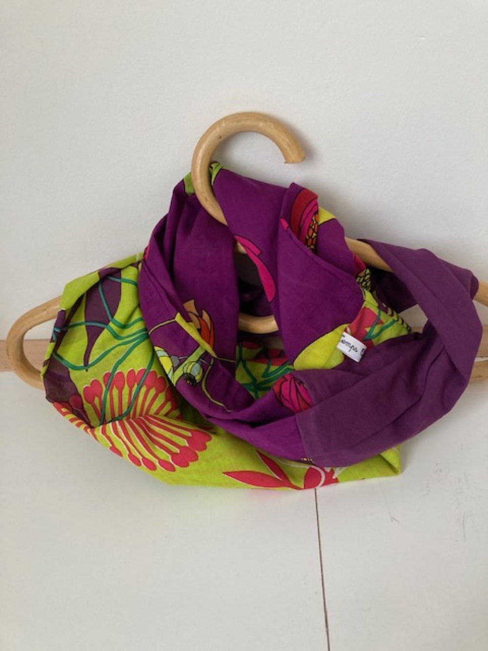 Snood femme de printemps réalisé dans 3cotons indiens de qualité assortis..La longueur permet de faire deux tours de cou afin accessoiriser joliment une tenue.