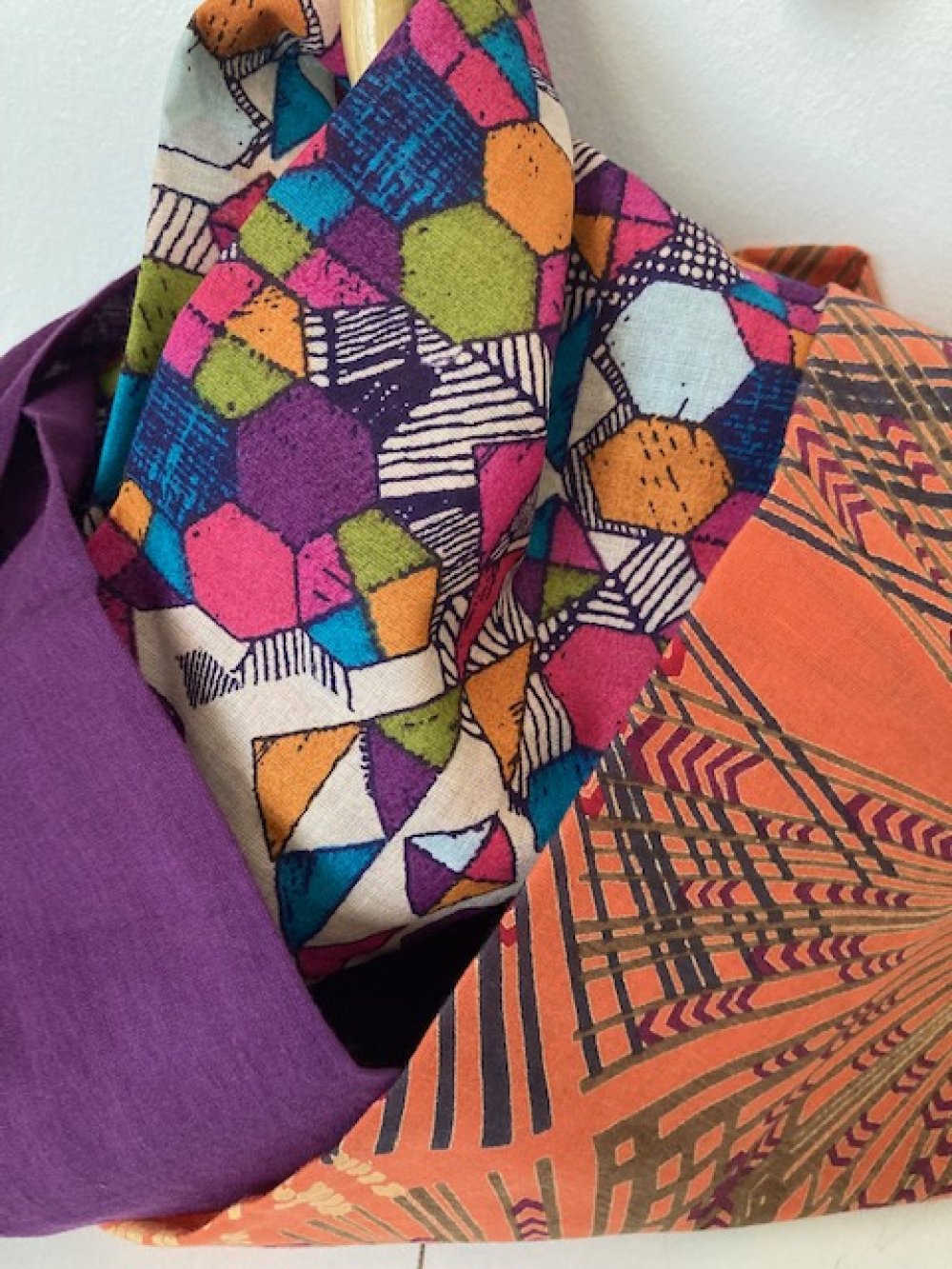 Snood femme de printemps réalisé dans 3 cotons indiens de qualité assortis..La longueur permet de faire deux tours de cou afin accessoiriser joliment une tenue.