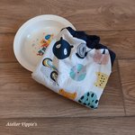 Serviette enfant tour de tête élastique, facile à enfiler, facilite l'autonomie. Parfait pour tous les repas, à la maison, chez nounou ou à l'école.