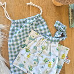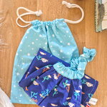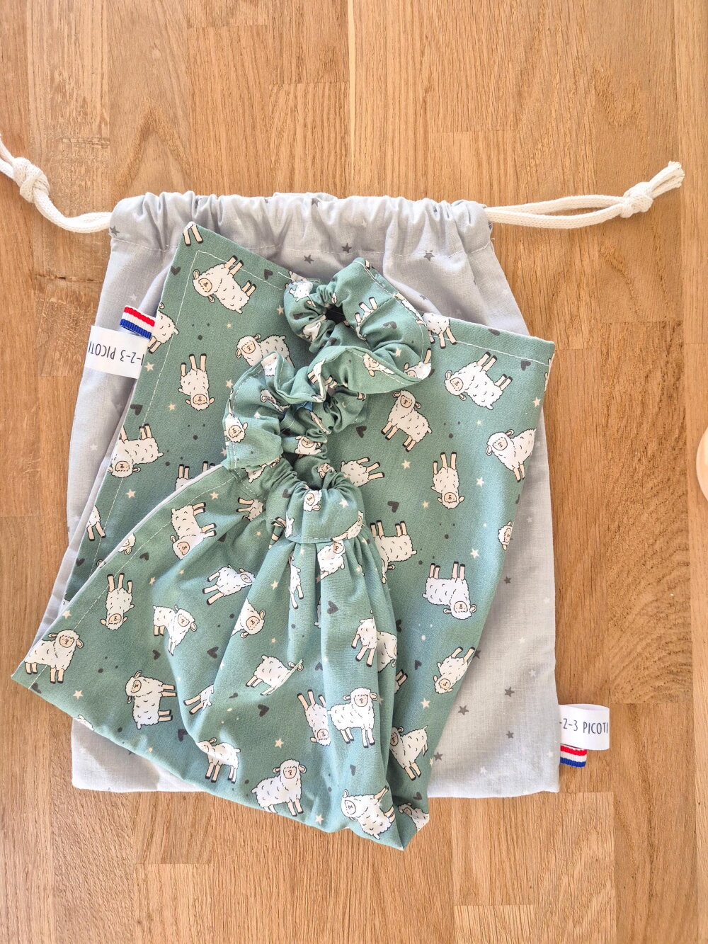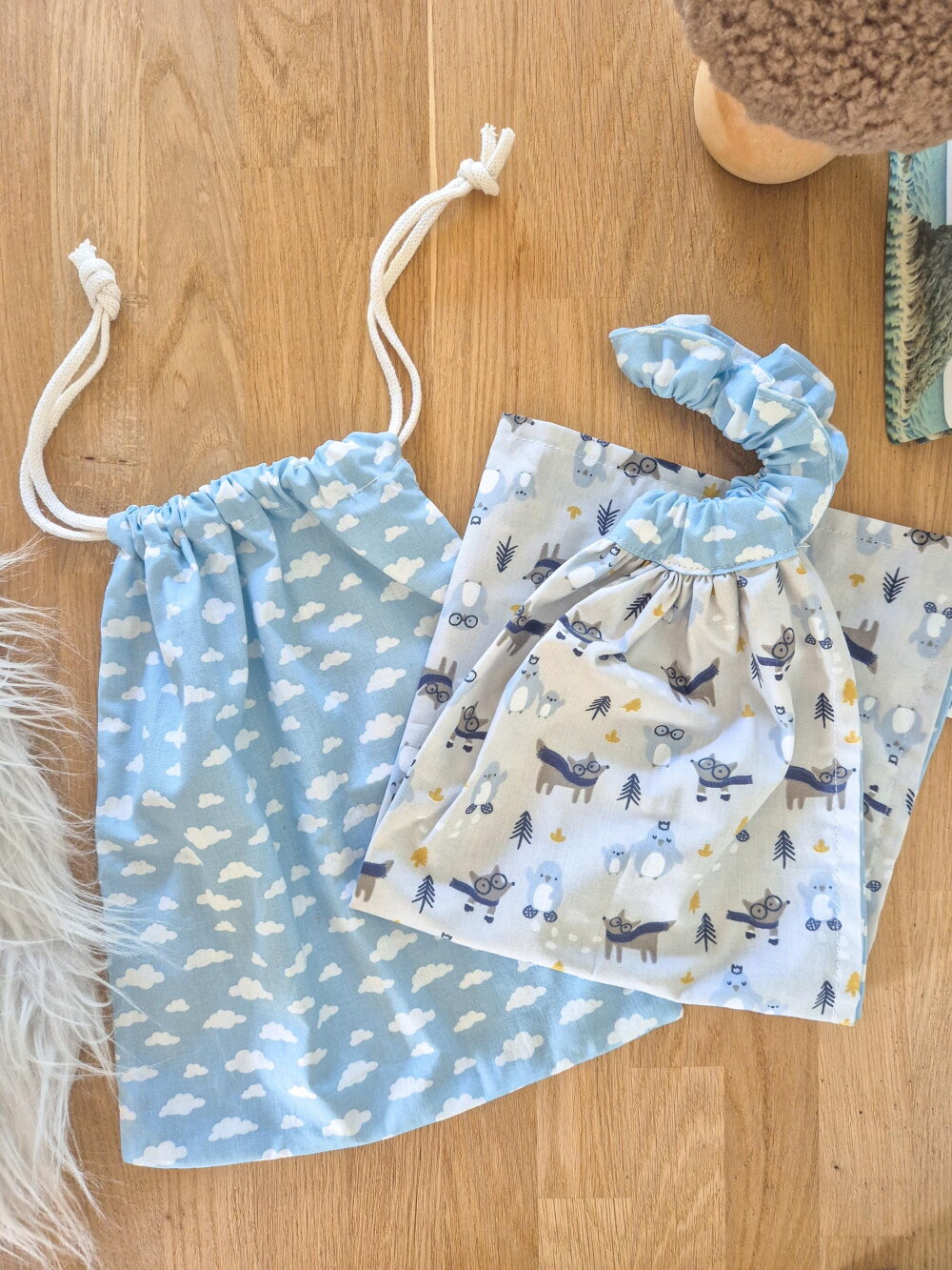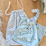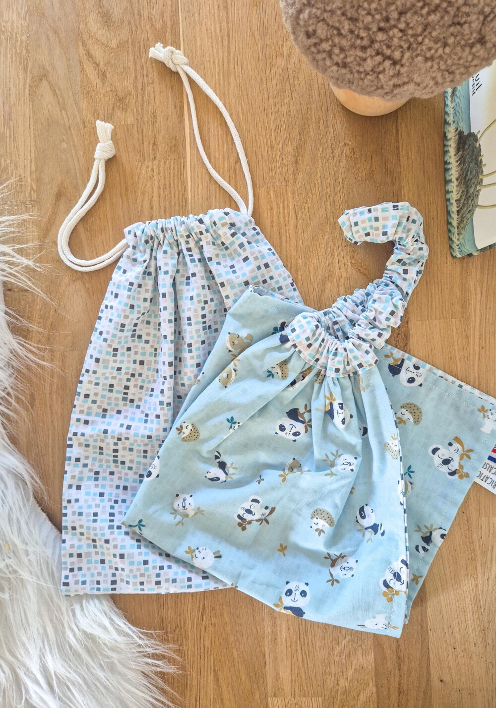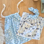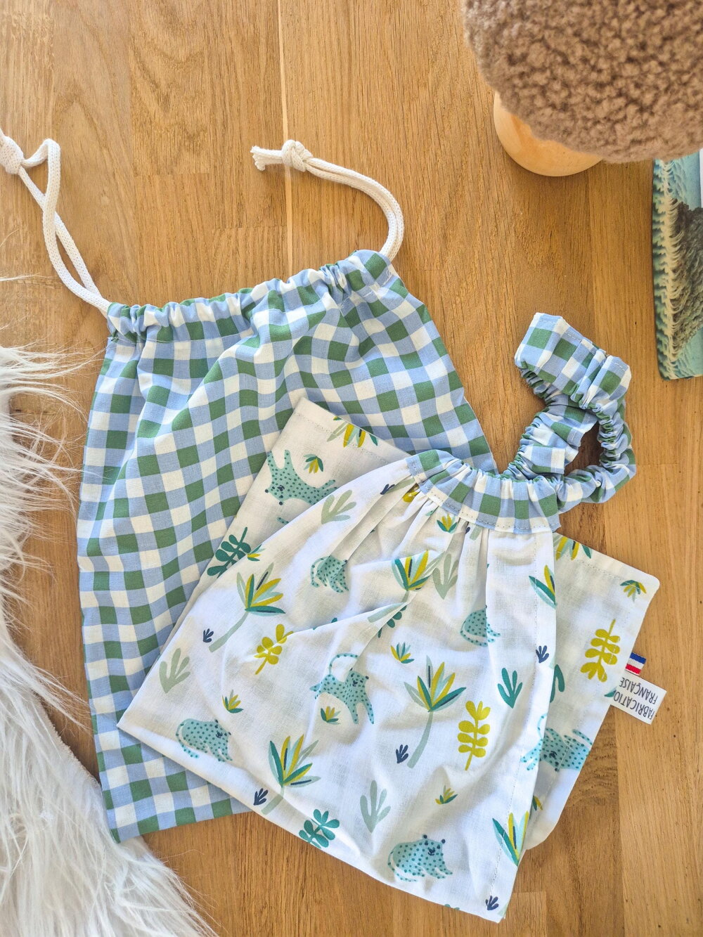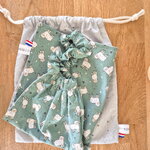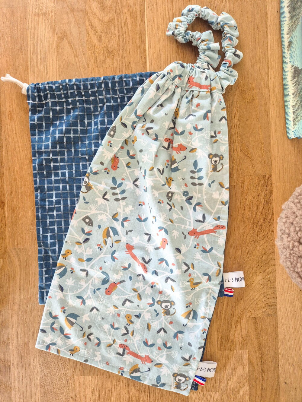 Grande serviette de cantine, recto verso fantaisie avec son pochon de rangement, coton .