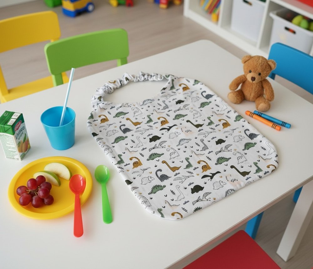 Serviette de table, serviette de cantine élastique doublée pour enfant / motif dinosaures