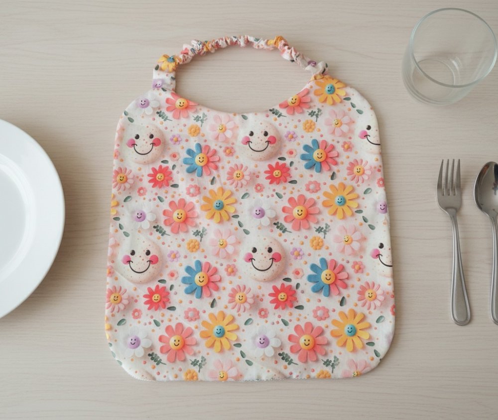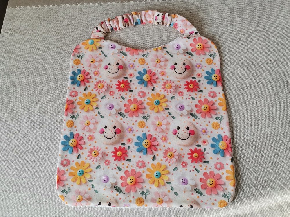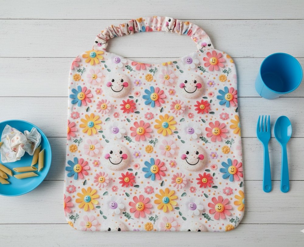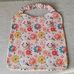Serviette de table, serviette de cantine élastique doublée pour enfant / motif fleurs et smiley effet 3D