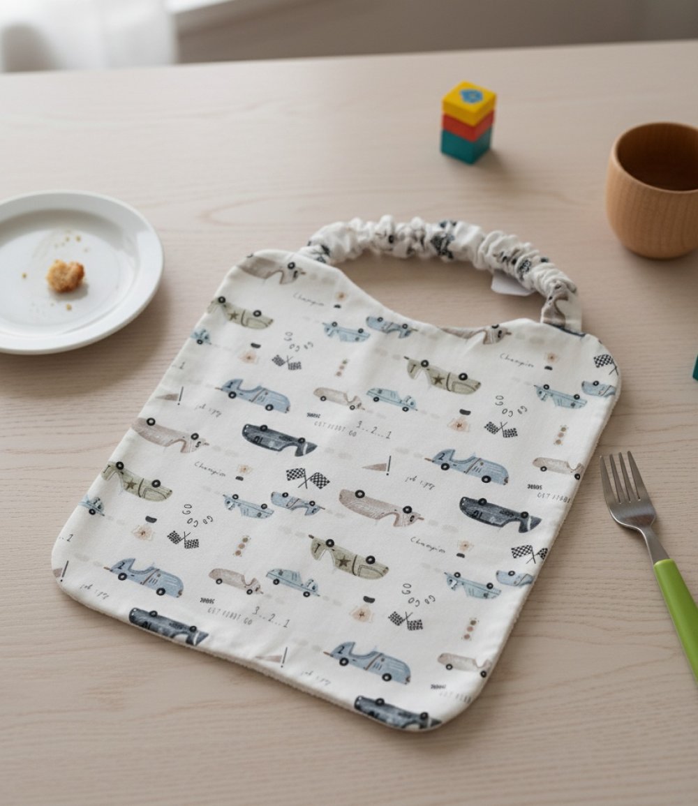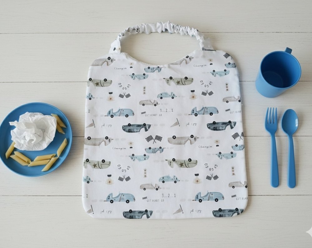 Serviette de table, serviette de cantine élastique doublée pour enfant / motif voitures anciennes