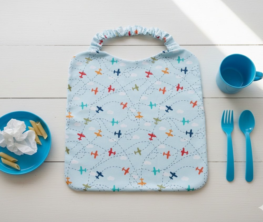 Serviette de table, serviette de cantine élastique doublée pour enfant / motif avion dans ciel bleu