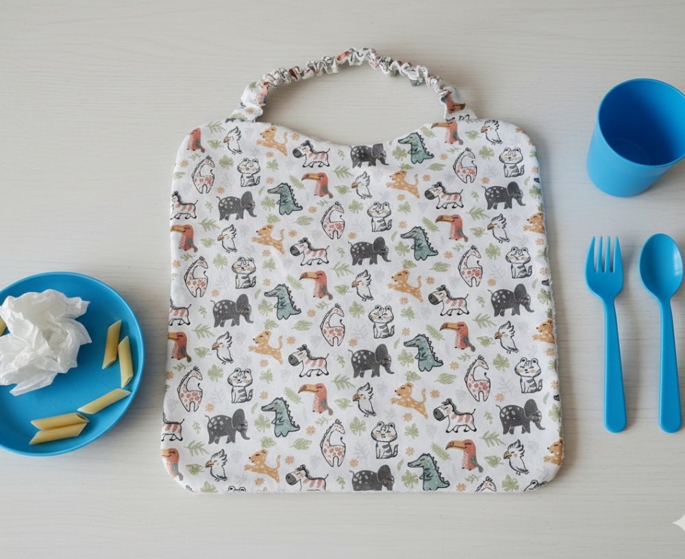 Serviette de table, serviette de cantine élastique doublée pour enfant / motif animaux divers
