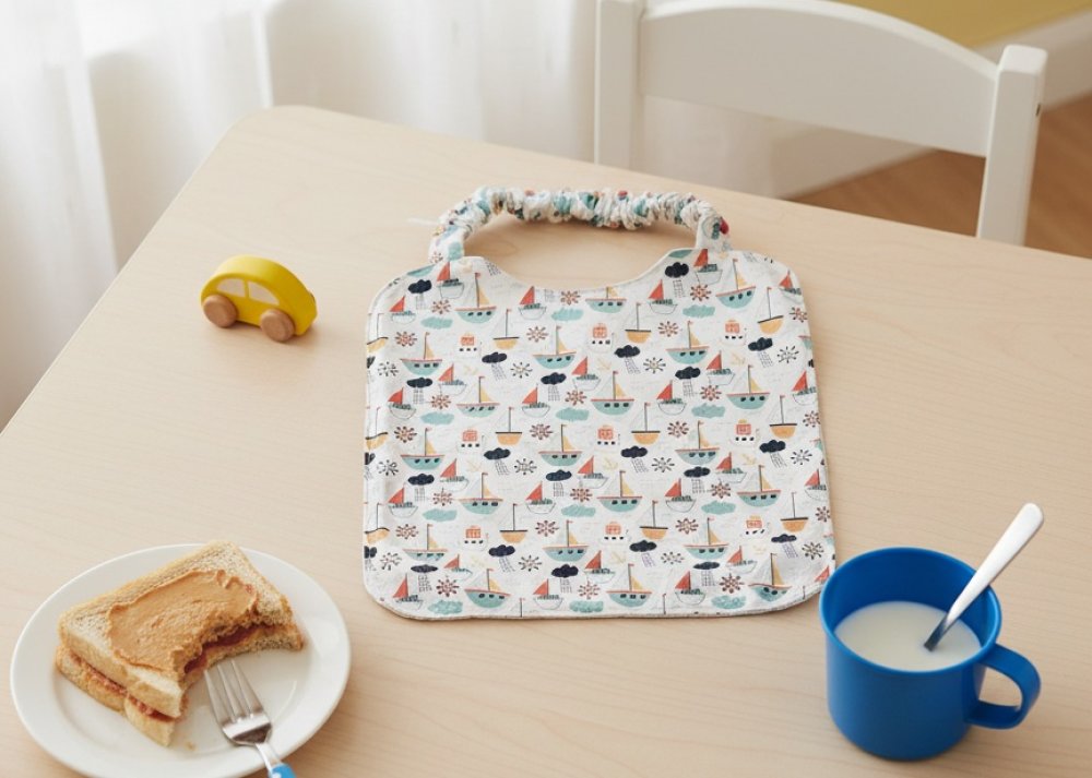 Serviette de table, serviette de cantine élastique doublée pour enfant / motif bateaux