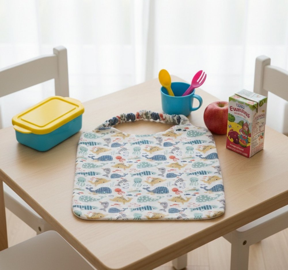 Serviette de table, serviette de cantine élastique doublée pour enfant / motif poissons