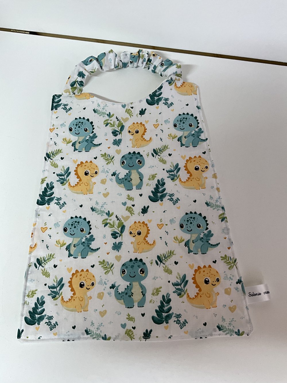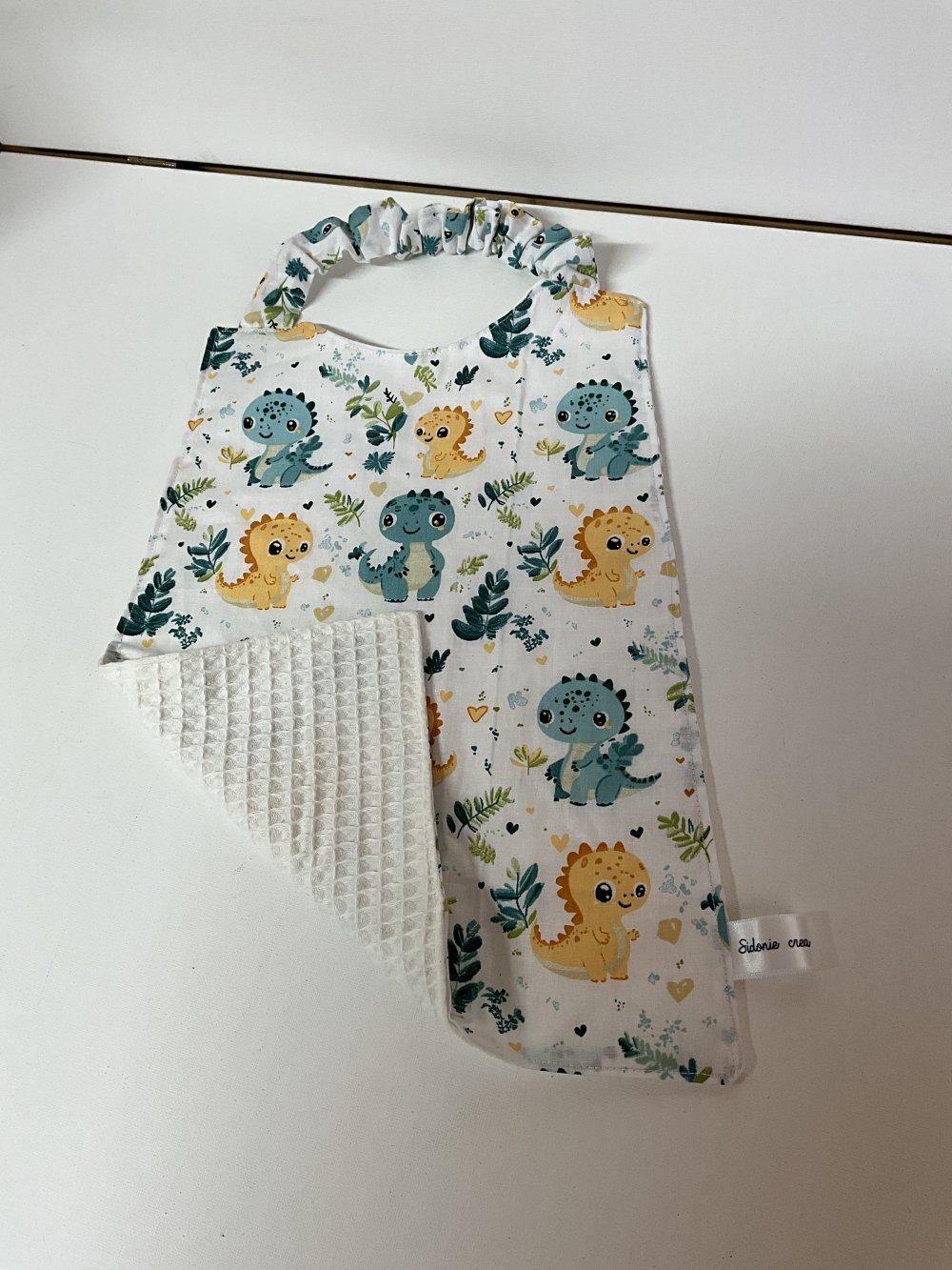 Grande serviette de cantine avec attache élastique tout de cou en coton imprimé et nid abeille .lavable en machine 40° , pour enfant des 4 ans .zero dechet
