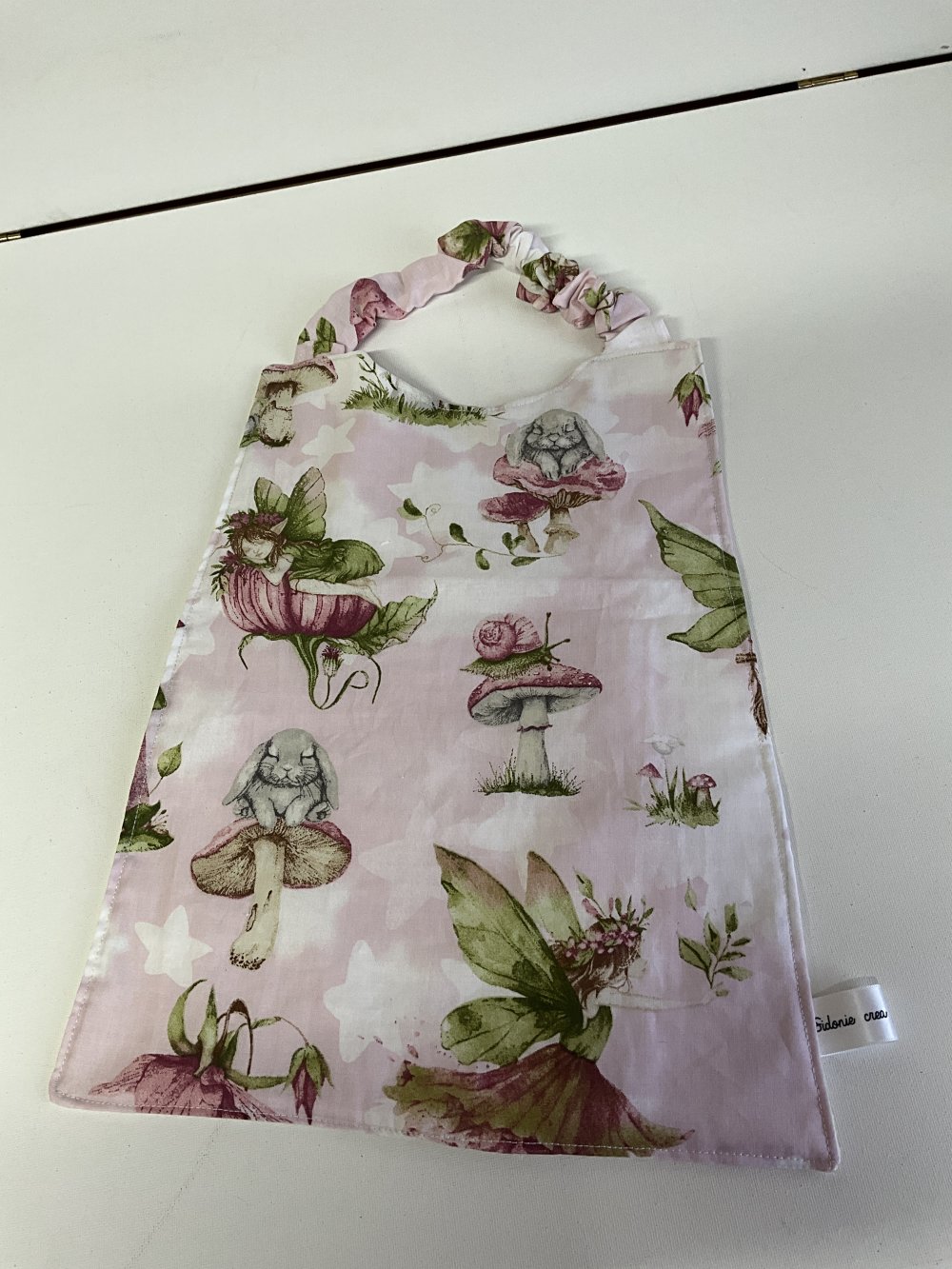 Grande serviette de cantine avec attache élastique tout de cou en coton imprimé et nid abeille .lavable en machine 40° , pour enfant des 4 ans .zero dechet