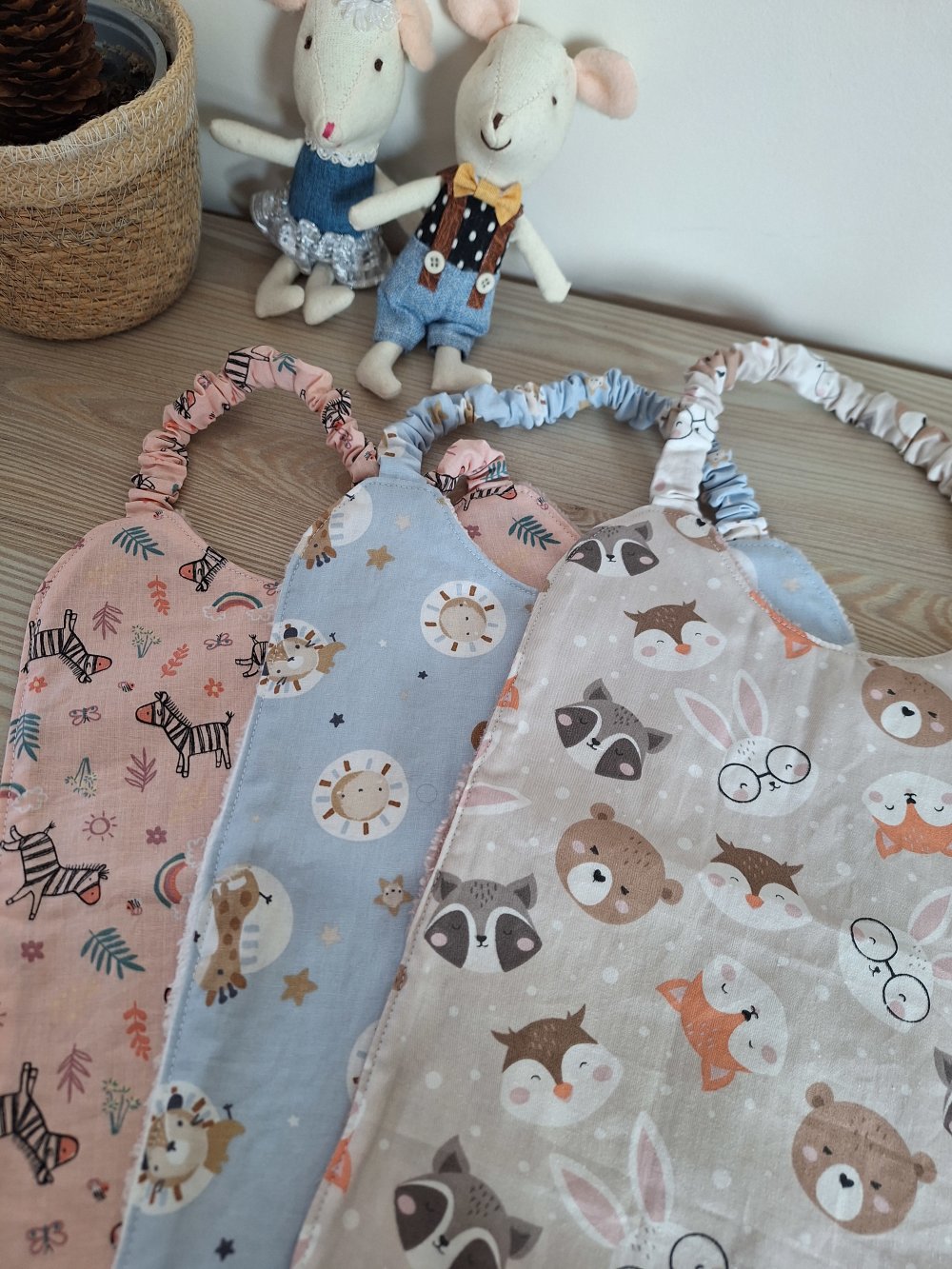 Entièrement réalisée à la main dans un tissu 100% coton imprimé et éponge de bambou.
