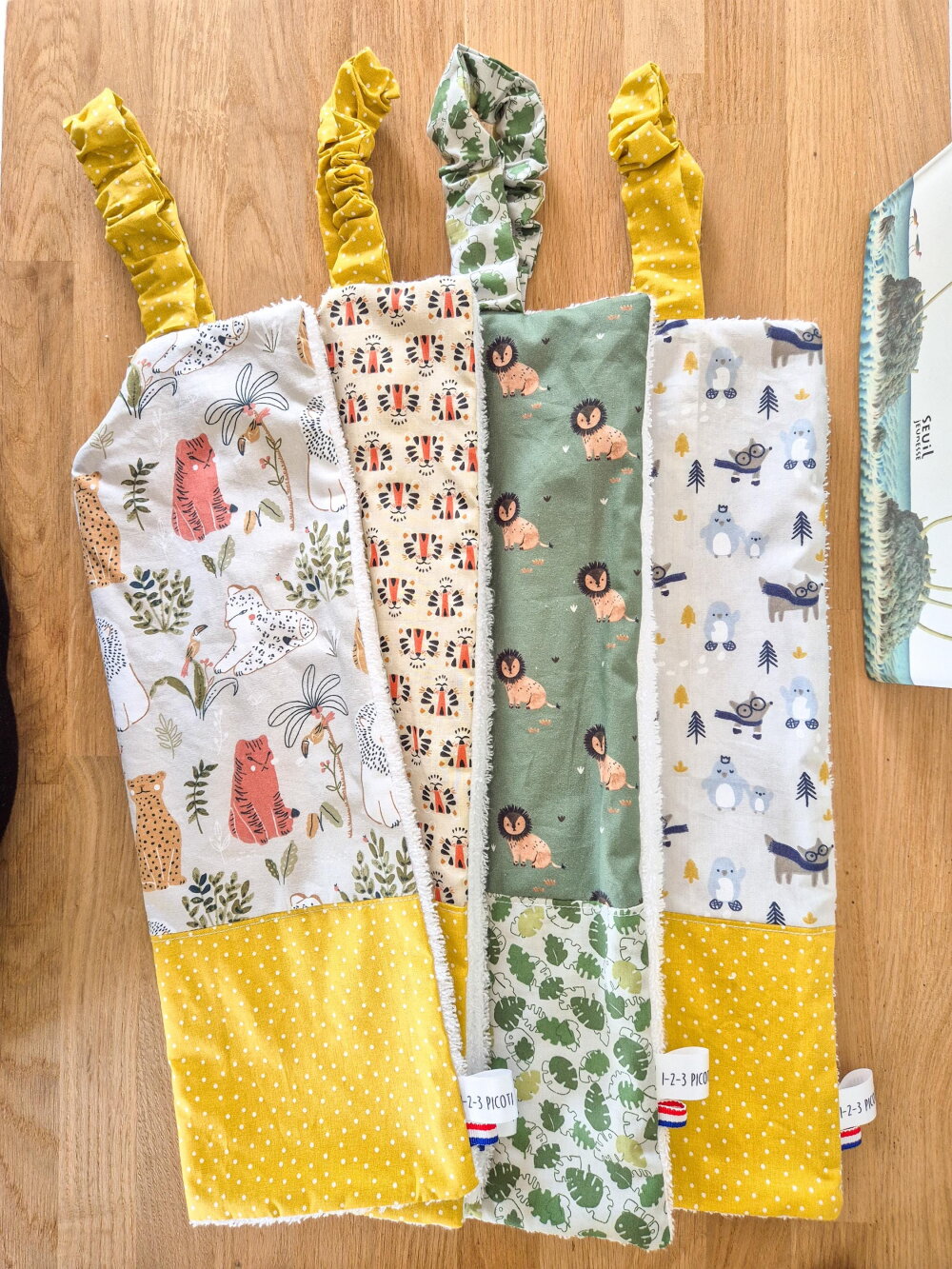 Serviettes cantine XXL , plusieurs modèles ,grand bavoir 3 ans et plus , éponge coton