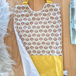 DIMENSIONS ( à titre indicatif ) : 30 cm de large en bas du bavoir et 40 cm de hauteur , sans élastique.