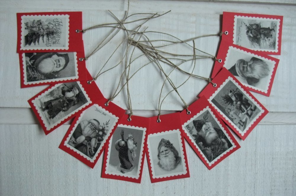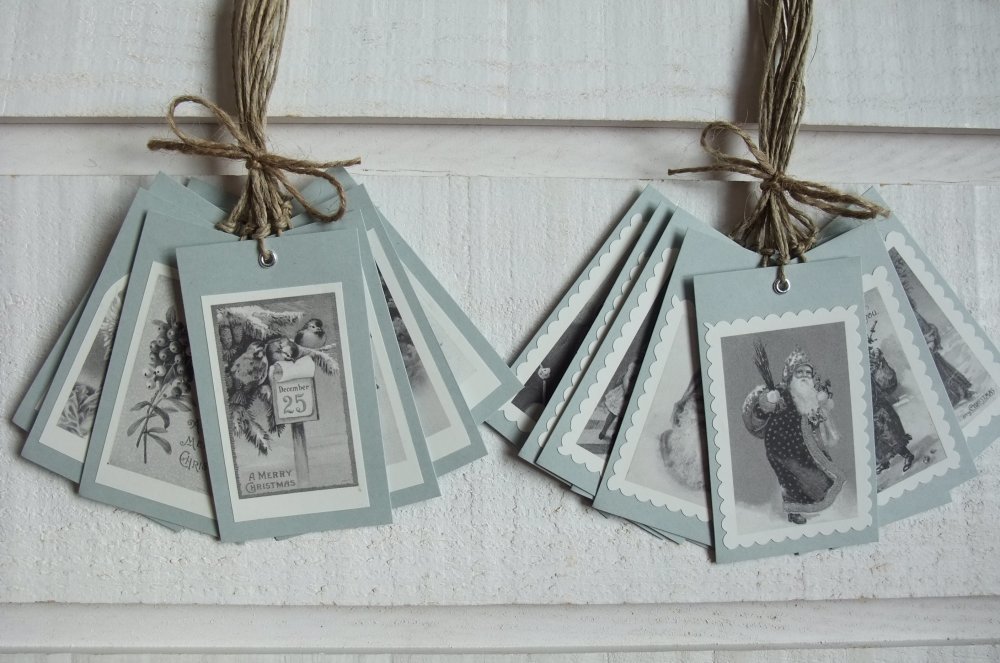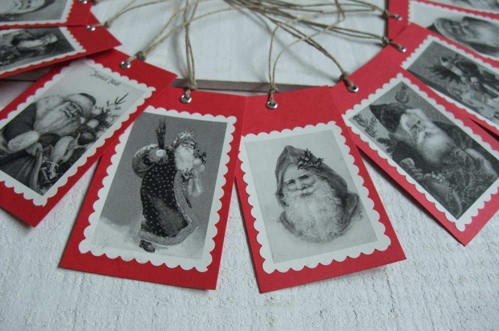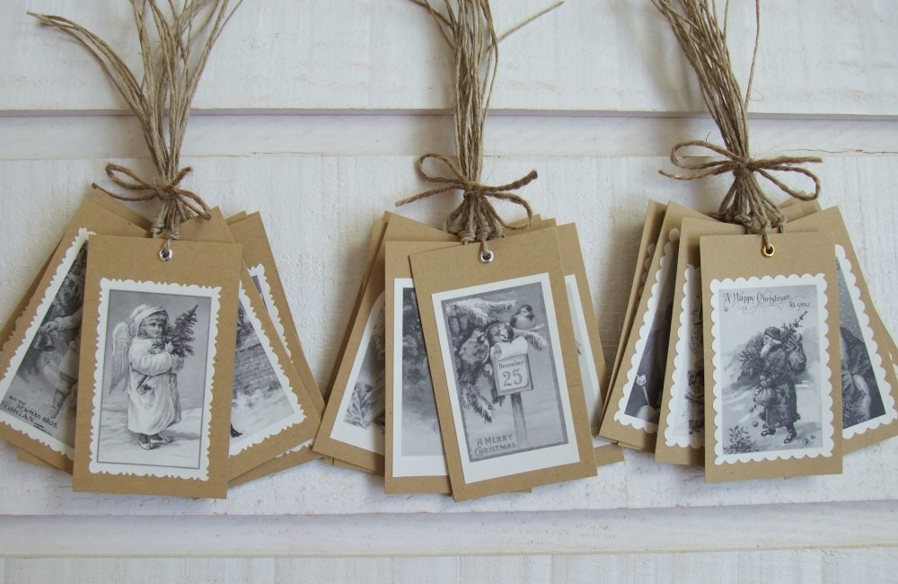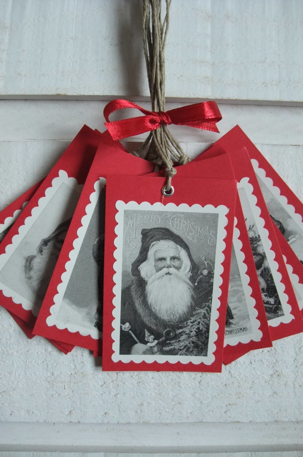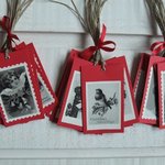 Lot de 10 étiquettes Noël (n°8) Vintage / rouge