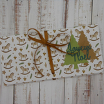 Pochette cadeau de noël billet, chèque, place de spectacle cheval à bascule vert marron fait main