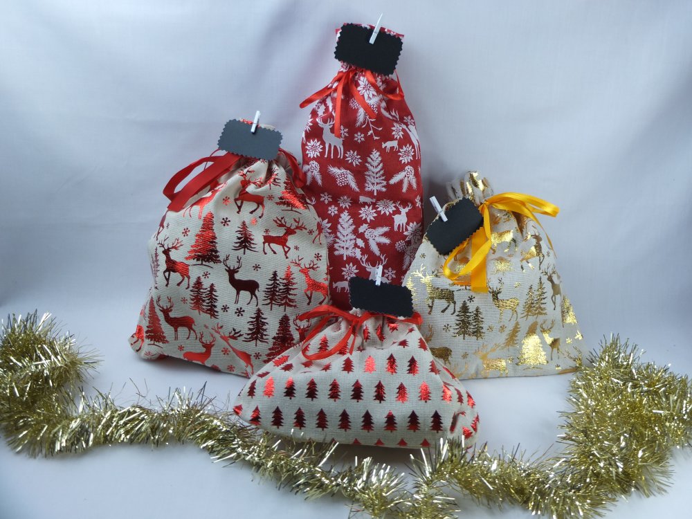 🎄 Pour l'environnement, zéro déchet, voici trois petits sacs pour emballer des cadeaux et réutilisable.