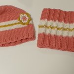 Joli ensemble tricoté aux aiguilles, pour bébé de 1 an, composé d'un bonnet et d'un snood assorti.