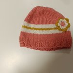 Le bonnet mesure 18 cms de large et 17 cms de haut, toujours sans étirement. Une petite fleur vient joliment agrémenté le bonnet.