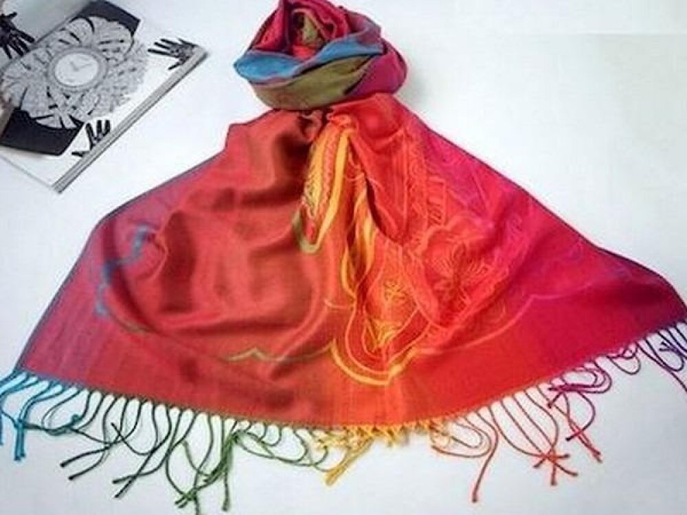 Je vous propose un très jolie Etole multicolore en fibre acrylique technique de tissage traditionnelle balinaise imitant merveilleusement le style Pashmina (imitation de la soie)
