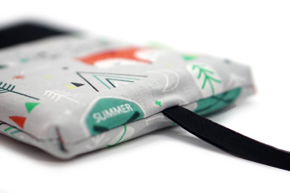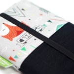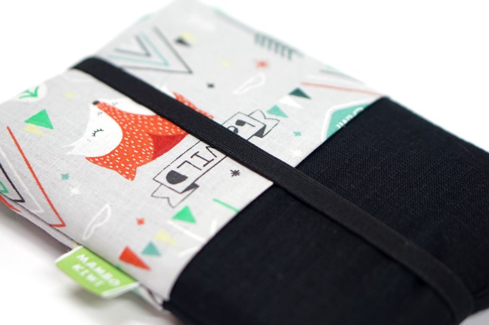 Housse de rangement rembourrée anti chocs en lin noir avec élastique : motif boho et petit renard